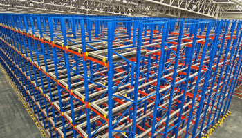Drive-In Racking is a series of storage tunnels with angle rails on either side at multiple levels, to support the pallets. Lift trucks can drive into any given tunnel, to retrieve or put away pallets. This allows for the racking system to be up to 10 pallets deep. This high-density storage system is best for LIFO application and is the least expensive high cubic utilization option. This type of storage system is also available in Drive-thru racking with FIFO loading/unloading, however in this instance, additional bracing is required for stability. -
