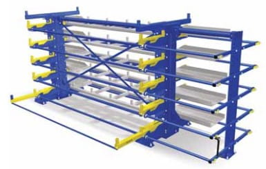 Storing and picking iron bars, piping, and raw materials in a safe and efficient matter is quite a challenge. Often, these items are stored on the ground where workers must go through a pile to get the material they need. To increase the level of safety and efficiency in your workspace, with proper inventory control, we offer you the Roll Out Rack.